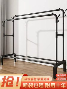 150cm ブラック | ダブルポール + コートフック 4 個 + 強化脚 ★ 極厚で厚手+二重掛け