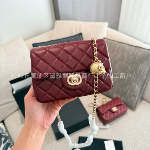 国境を越えた人気の本革スクエアファットダイヤモンドスモールゴールデンボールチェーンバッグハイバージョンスモールフレグランススタイルシングルショルダークロスボディレディースバッグ