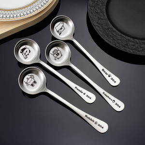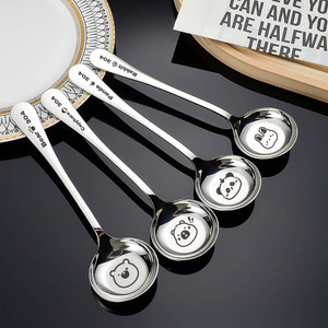304 ステンレス鋼の平底ラウンドスプーン深めのスープスプーン家庭用高品質漫画テーブルスプーン子供用スプーンレーザーロゴ