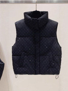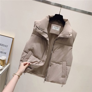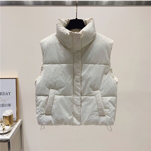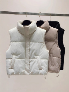 秋と冬の女性用ショートコットンベスト、ルーズ韓国スタイル2025ファッショナブルな新しいスタイルの小さな光沢のあるスタンドカラーチョッキジャケットトレンディ
