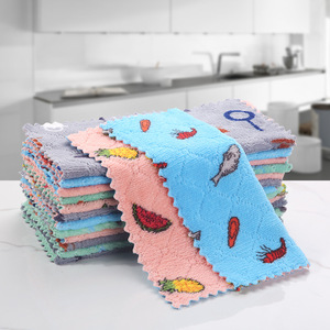 コーラルベルベットプリント食器洗い布、糸くずが出ない、超吸水性、家庭用、油汚れに強く、二層構造、キッチン用、耐久性あり