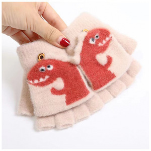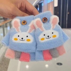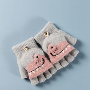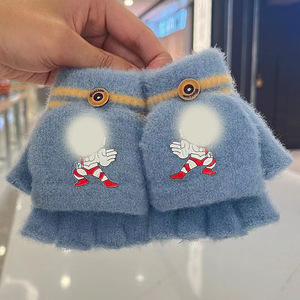 秋冬の男の子と女の子の厚く暖かい手袋、幼児の5本指小学生の書き込みハーフフィンガーフリップ子供用手袋