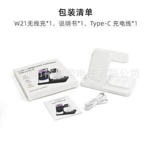 W21 4-in-1 ワイヤレス充電器 15W 急速充電 調節可能なナイトライト 折りたたみスタンド 時計 ヘッドセット 携帯電話 ワイヤレス充電器