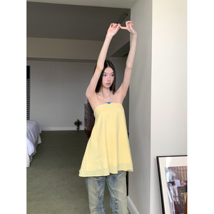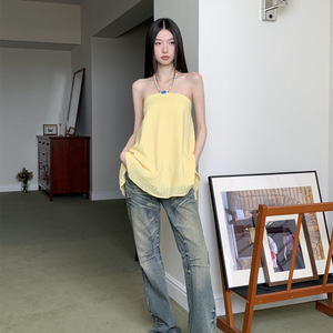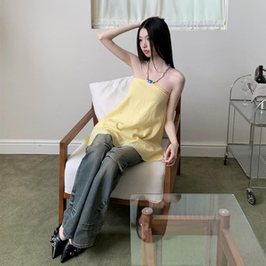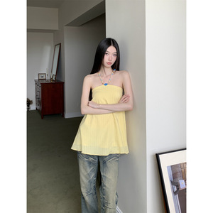 黄色のチューブトップホルターネックトップホットガールフレンチニッチデザイン