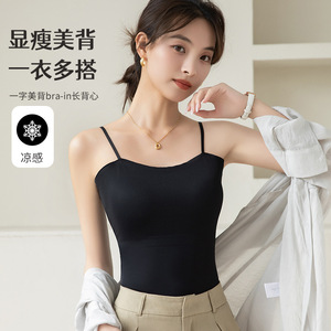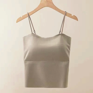 外国貿易越境人気のアイスシルクシームレス美背中下着胸パッド付きブラジャーなし夏薄いキャミソール