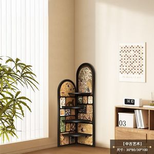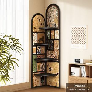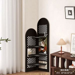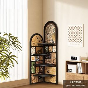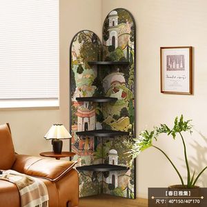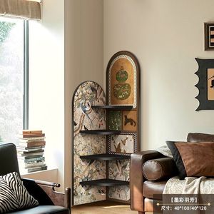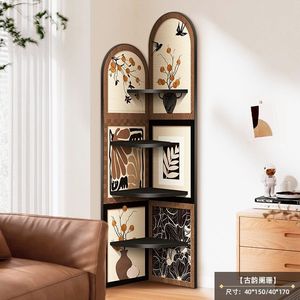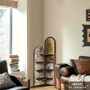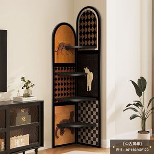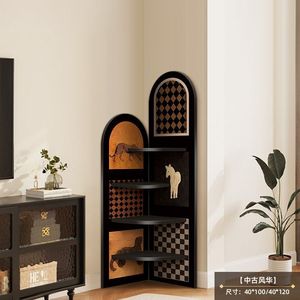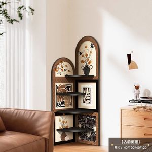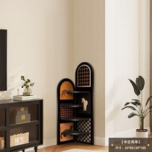 ミッドセンチュリースタイルの床置き装飾品、リビングルームのテレビキャビネットの横にあるコーナーキャビネット、レトロな収納ラック、多層収納キャビネット、三角キャビネット