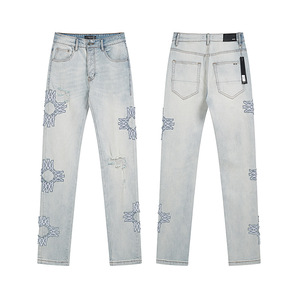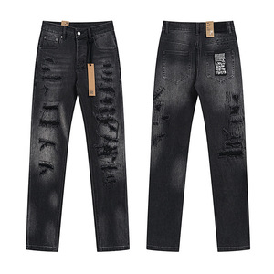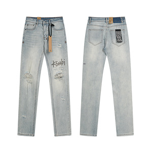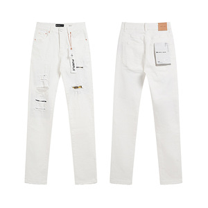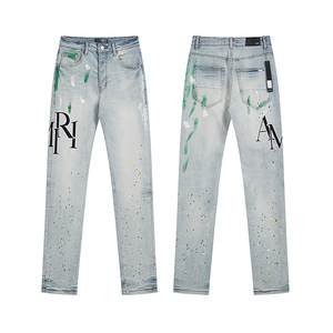 パープルブランドの新しいスプラッシュインクプリントビューティートレンディなハイストリートレトロリッピングカジュアルトレンディなデニムパンツ男性と女性用