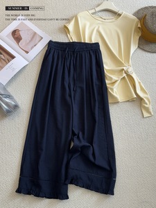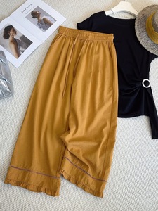 涼しいレースパンツ!薄いルーズワイドレッグパンツ女性の夏薄い弾性ウエスト 9 点ストレートパンツカジュアルパンツ