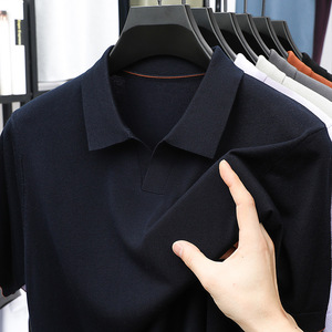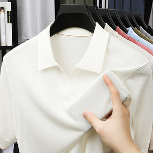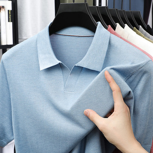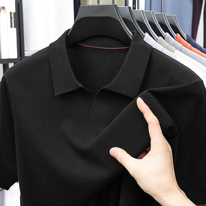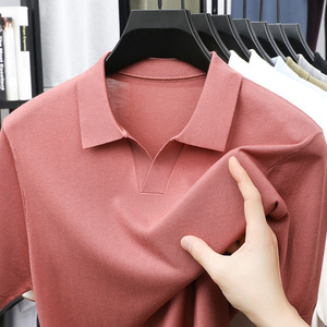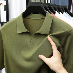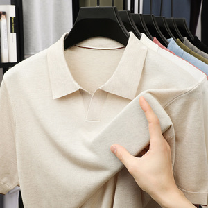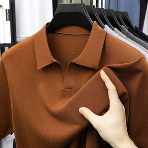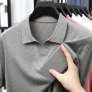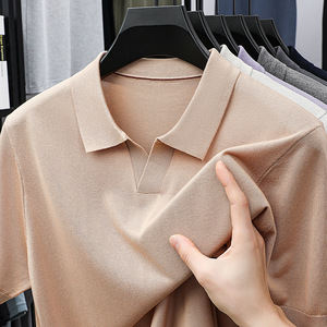 莱赛尔天丝针织短袖t恤2025新款纯色冰丝高级感男士海鸥领POLO衫