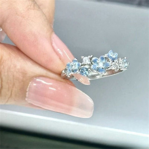 「Xinghuihua」沈興輝印象オーシャンブルー星花リングレディースライトラグジュアリーニッチハイエンドスイートグルメフィンガー