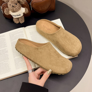 厚底ビルケンシュトックシューズつま先ハーフスリッパ女性の夏アウター 2025 春と秋の新しいスタイル妊婦レトロ醜いかわいいハーフスリッパ