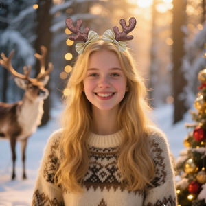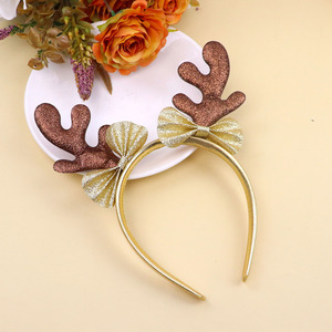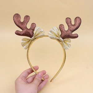 新款圣诞闪粉鹿角发箍亮片儿童节日派对装扮头扣麋鹿蝴蝶结发饰