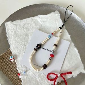 手作りのインスタ映えする黒い小花ビーズのリストチェーン、可愛いコントラストカラーの携帯電話ストラップ、CCDカメラストラップ、トレンド