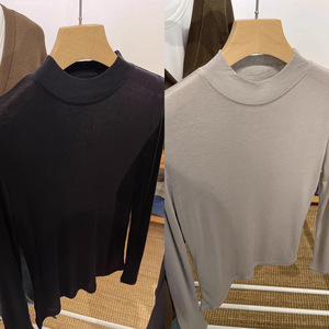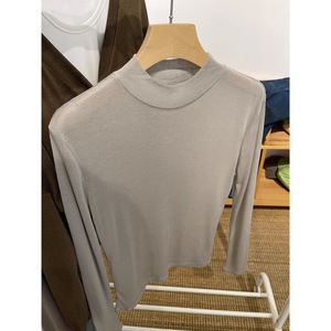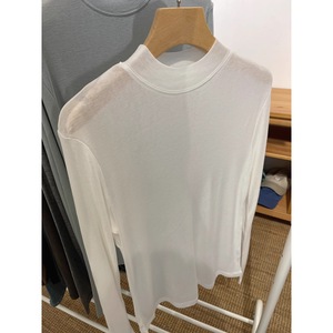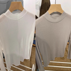 テンセルウールマスクTシャツレディース初秋薄手長袖右肩トップス白インナーハーフタートルネックボトリングシャツ