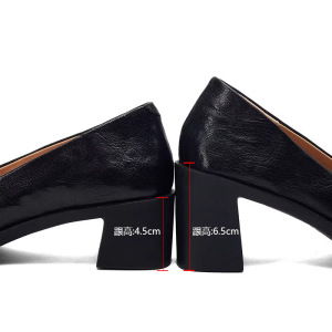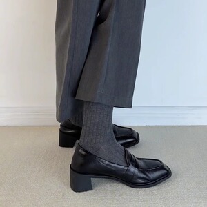 本革ローファーレディース厚底ヒール2025春秋万能片足スクエアトゥスモールレザーシューズブラックレトロハイヒールシューズ