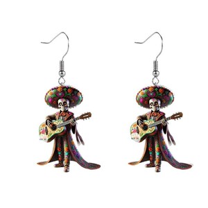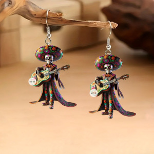 クロスボーダーデザインメキシコ風ギタースカルアクリルミーイヤリングレトロ文学デザインイヤリング