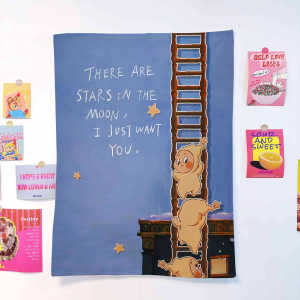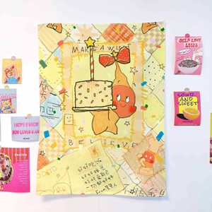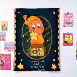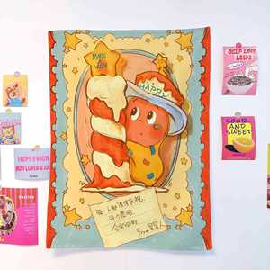 治愈系可爱星星人挂布卡通宿舍卧室出租屋装饰墙面遮丑拍照背景布