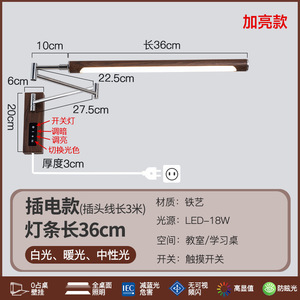 中古ロッキングアーム電気壁掛けランプ ウォールナット木目調 書斎 寝室 デスク 壁掛け読書学習用 目に優しいランプN