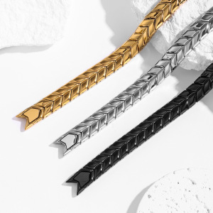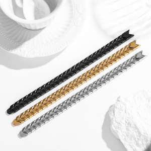 ヨーロッパとアメリカンスタイルのチタン鋼ゴールド小麦耳形状細かい研磨ブレスレット 316 ステンレス鋼真空電気メッキキューバブレスレット卸売