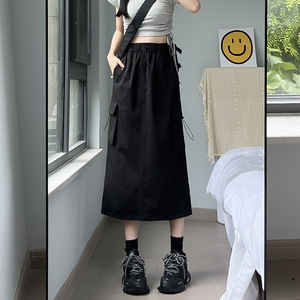 秋2025新款高腰a字工装裙美式复古女春显瘦百搭中长款灰色半身裙