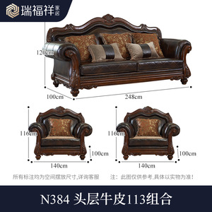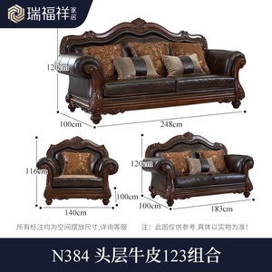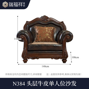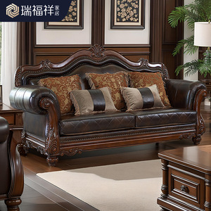 美式实木沙发头层牛皮大户型高端欧式雕花真皮沙发别墅家具N384
