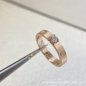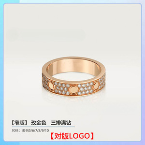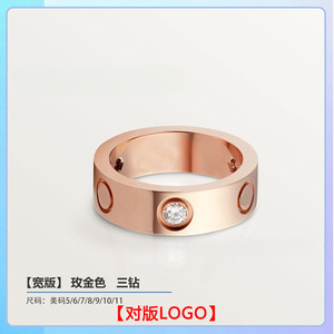 高版V金镀18K金卡家经典LOVE戒指轻奢窄版宽版单钻三钻满天星指环