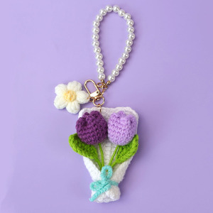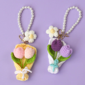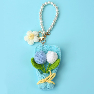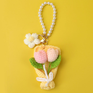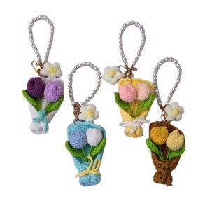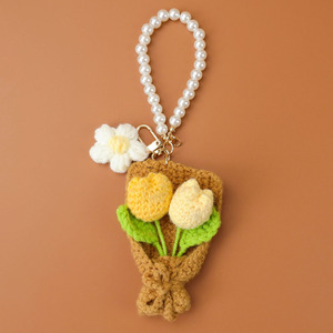 新しいクロスボーダー織り花キーホルダー女性のクリエイティブギフト双頭チューリップペンダントグラデーションカラーバッグペンダント