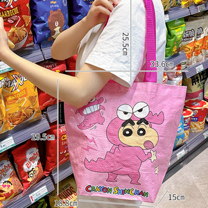 スーパーマーケットの折りたたみ式ポータブル環境に優しいショッピングバッグ、強くて耐久性のある大容量のハンドバッグ、女性用クレヨンしんちゃん織りバッグ