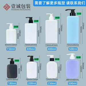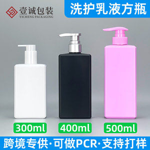 300ml 500ml洗发水沐浴露方瓶400ml洁面乳扁瓶PE洗护乳液按压泵瓶