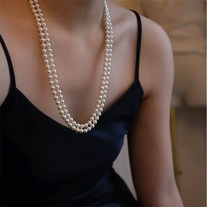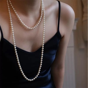 欧美跨境爆款气质超长珍珠轻奢小众复古高级感双层多层叠戴女项链