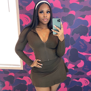 D25ST234 クロスボーダー新作レディーススタンドカラー長袖スリムジッパーカーディガントップショートパンツスカートツーピーススーツ