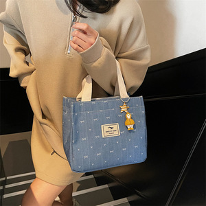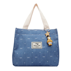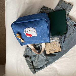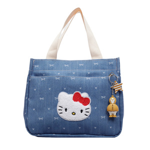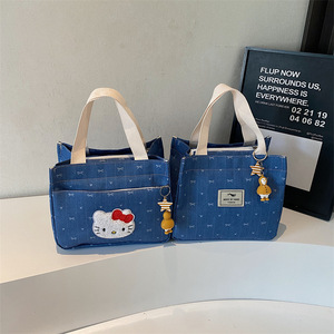 通勤ランチバッグ新しい漫画かわいいキティ猫収納袋女性の大容量カジュアルデニムハンドバッグ