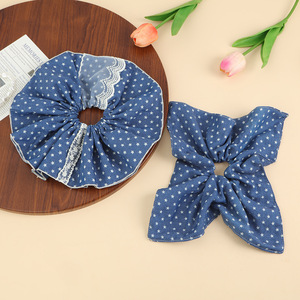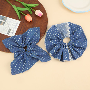新しいスタイルのブルーの生地のヘアゴム、レトロな韓国のヘアアクセサリー、多用途で優しくて気質の高い高弾性ヘアロープ