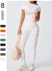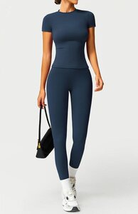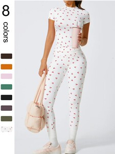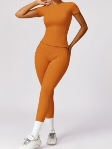 起毛ヨガ服セットハイウエストタイトヨガフィットネス服ランニングスポーツ女性の半袖ズボンセット 8455