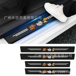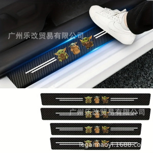 車の漫画ユニバーサルドアシルストリップレザーカーボンファイバーブラックドアシルストリップ衝突防止ストリップドアアンチステップステッカーリアバンパー装飾ステッカー
