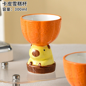 カピバラアイスクリームカップかわいいセラミックカップクリエイティブ面白いマグカップ女性かわいい漫画カピバラデザートカップ