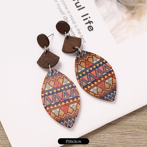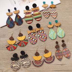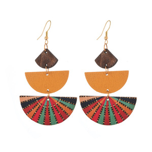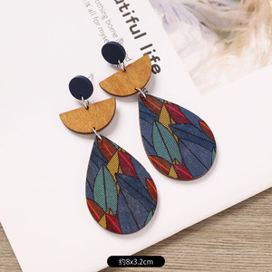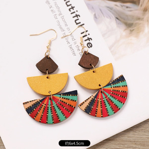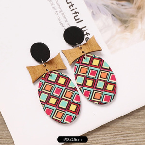 ボヘミアンウッドイヤリングニッチデザインエスニックスタイル幾何学ストライププリントイヤリングフェミニンな個性イヤリング