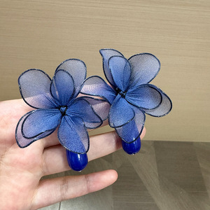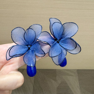 香港スタイルのレトロなチュールフラワーペンダントウォータードロップイヤリング