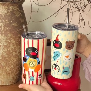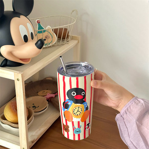 新しい漫画のポータブルステンレス鋼魔法瓶カップ、かわいい男性と女性の学生のための見栄えの良いイン大容量ストローカップ