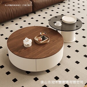 中世スタイルのスレートラウンドコーヒーテーブルリビングルームホームモダンライト高級ハイエンドシンプルな古代スタイルウォールナットカラーエスプレッソセット