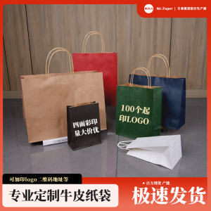 クラフト紙ハンドバッグカスタムベイクドミルクティーケータリングテイクアウト包装袋ホリデーショッピングギフト包装紙袋