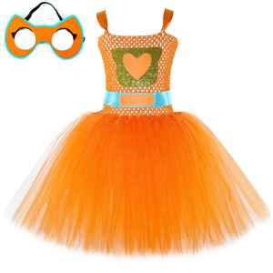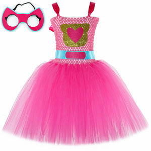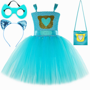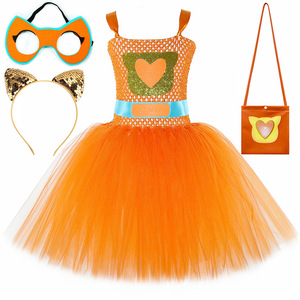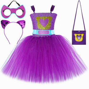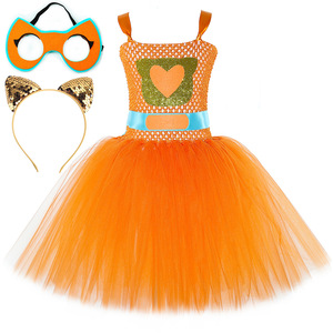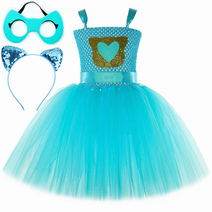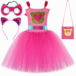 跨境新款SuperKitties超级猫咪连衣裙儿童卡通网纱tutu裙表演服