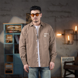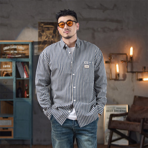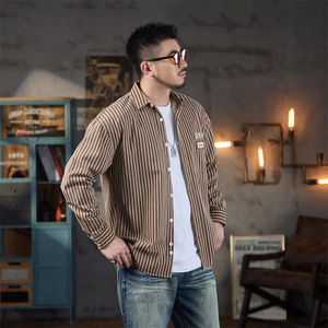 美式复古条纹长袖条纹衬衫男春秋季新款潮牌百搭外套抗皱大码男装