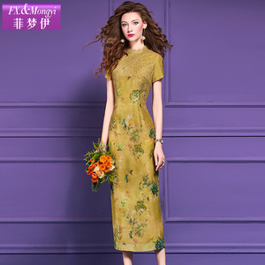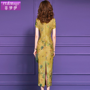 Feimengyi オリジナルプリントダイヤモンド新しい中国ドレス女性の夏のレトロな中国風のハイエンドワイドレディチャイナドレス