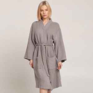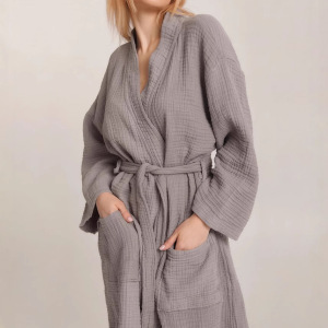 2025 ヨーロッパとアメリカの秋の新長袖クレープ綿ルーズナイトガウン快適なクロスボーダーホームホテルバスローブホーム服