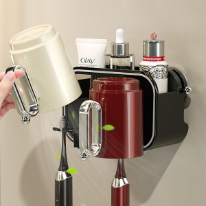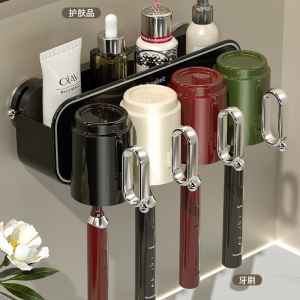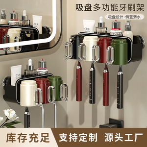 吸盤歯ブラシ収納ラック、パンチフリーうがい薬カップ、歯磨きカップ、浴室壁掛け家庭用電動歯磨き粉ラック