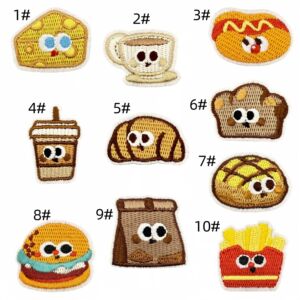 新しい漫画おいしい食べ物刺繍布ステッカーミルクティーパン刺繍パッチ刺繍スタンプ衣類アクセサリー在庫あり
