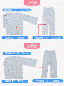 着脱が簡単な看護服、骨折患者の手術後の麻痺、寝たきり高齢者用の長袖病院服、鍼治療服、純綿の春秋