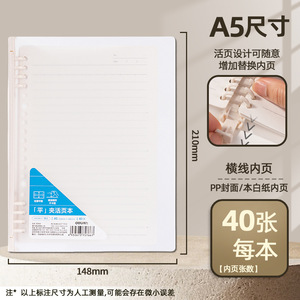 デリルーズリーフブックシェルクリップ A5 横線ノート 学生 B5 ハンドブック 40 ページ ルーズリーフインナーコアブック 取り外し可能