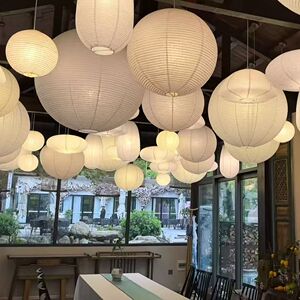 日式纸灯野口勇纸灯网红家居民宿餐厅侘寂风圆球形宣纸灯笼吊灯罩